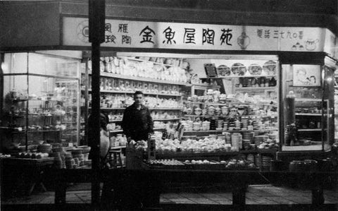 大正時代より、生簀(いけす)で金魚や鯉を飼育し、店頭販売はもとより市内を売り子が売り歩く商売と、秋から春の時期には陶器を商っておりました。 昭和2年に当時19歳であった2代目が名古屋で陶器店に勤めていたことから、金魚屋を廃業し陶器専門店に。